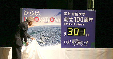 2018年12月8日に創立100周年を迎える本学では、これを記念して「電気通信大学100周年記念の碑」を建立し、11月9日(金)に除幕式を行いました。