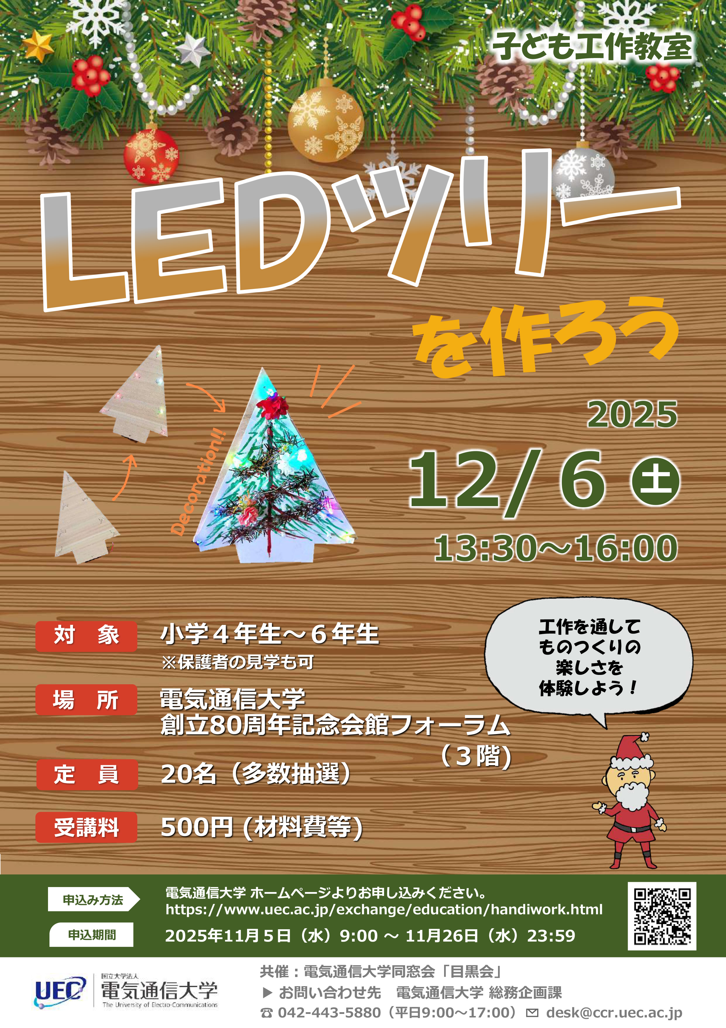 | 申込方法 | 子ども工作教室に申込む 申込期間:2025年11月5日(水曜日)~11月26日(水曜日)まで |