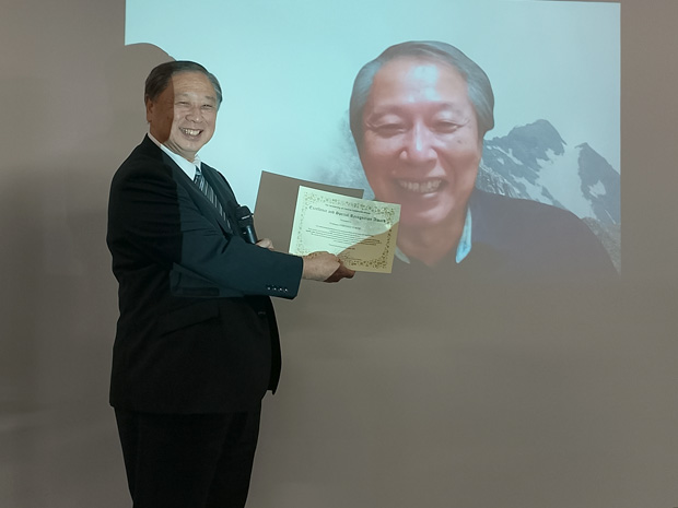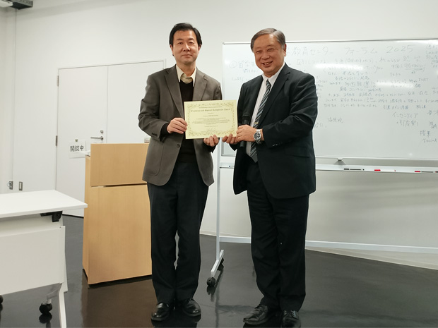 その後、外国人留学生の受け入れおよび教育指導に多大な貢献をされている教員に対し、日頃の感謝の意を込めて、大家万明理事(国際・広報戦略担当)より感謝状が贈られました。
