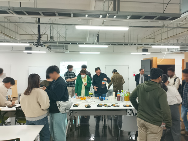 また、フォーラム終了後には親睦会を開催し、5限の講義を終えた日本人学生も加わり総勢約50名で和気あいあいとした雰囲気の中、参加した教職員と学生が専門分野や立場の垣根を越えて交流を深め、今後の連携を促進する機会となりました。
