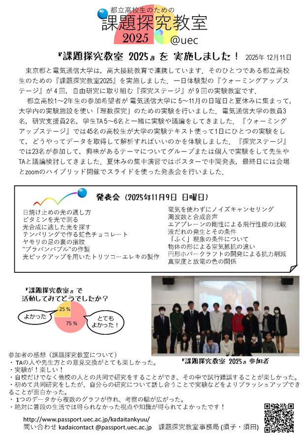【報告】2025年度「都立高校生のための課題探究教室」発表会を実施