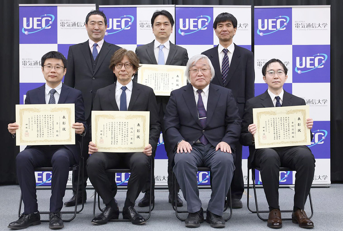 本学では1月23日(金)に令和7年度優秀教員賞授賞式を挙行しました。受賞式では、田野俊一学長から受賞者である、清雄一教授(情報学専攻)および「セキュリティ情報学実験担当教員グループ」の市野将嗣准教授(情報学専攻)、﨑山一男教授(情報学専攻)、李陽准教授(情報学専攻)、渡邉洋平准教授(情報学専攻)に、それぞれ表彰状および報奨金目録が授与され、清教授および受賞グループを代表して市野准教授から挨拶が述べられました。