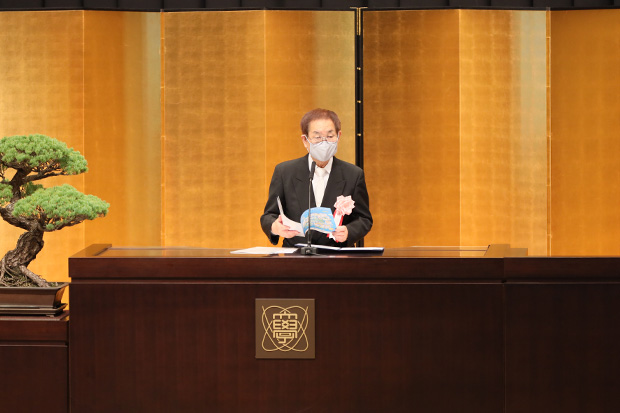 午前に学域、午後に大学院の入学式を開催いたしました。入学生代表宣誓、村松 正和学長による告辞に続き、学園活動後援会の長友貴樹会長(調布市長)、一般社団法人目黒会(本学同窓会)の森淳会長より祝辞をいただきました。