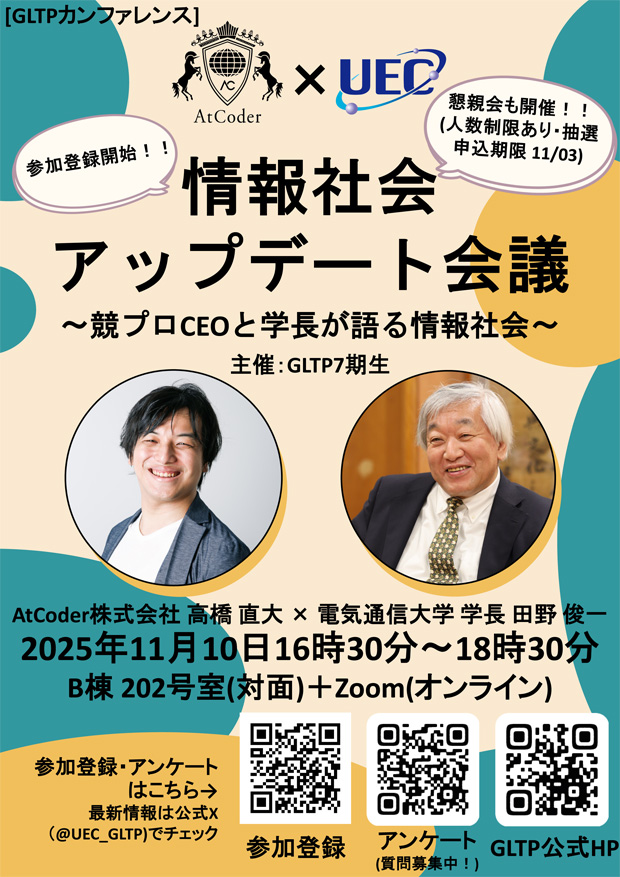 | GLTPカンファレンス/情報社会アップデート会議~競プロCEOと学長が語る情報社会~ | |||