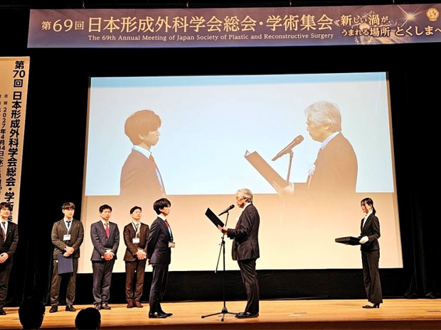 同賞は形成外科分野の学術向上を目的に、優れた論文(基礎・臨床)を表彰することを目的としており、2025年度は5名に対して贈られました。